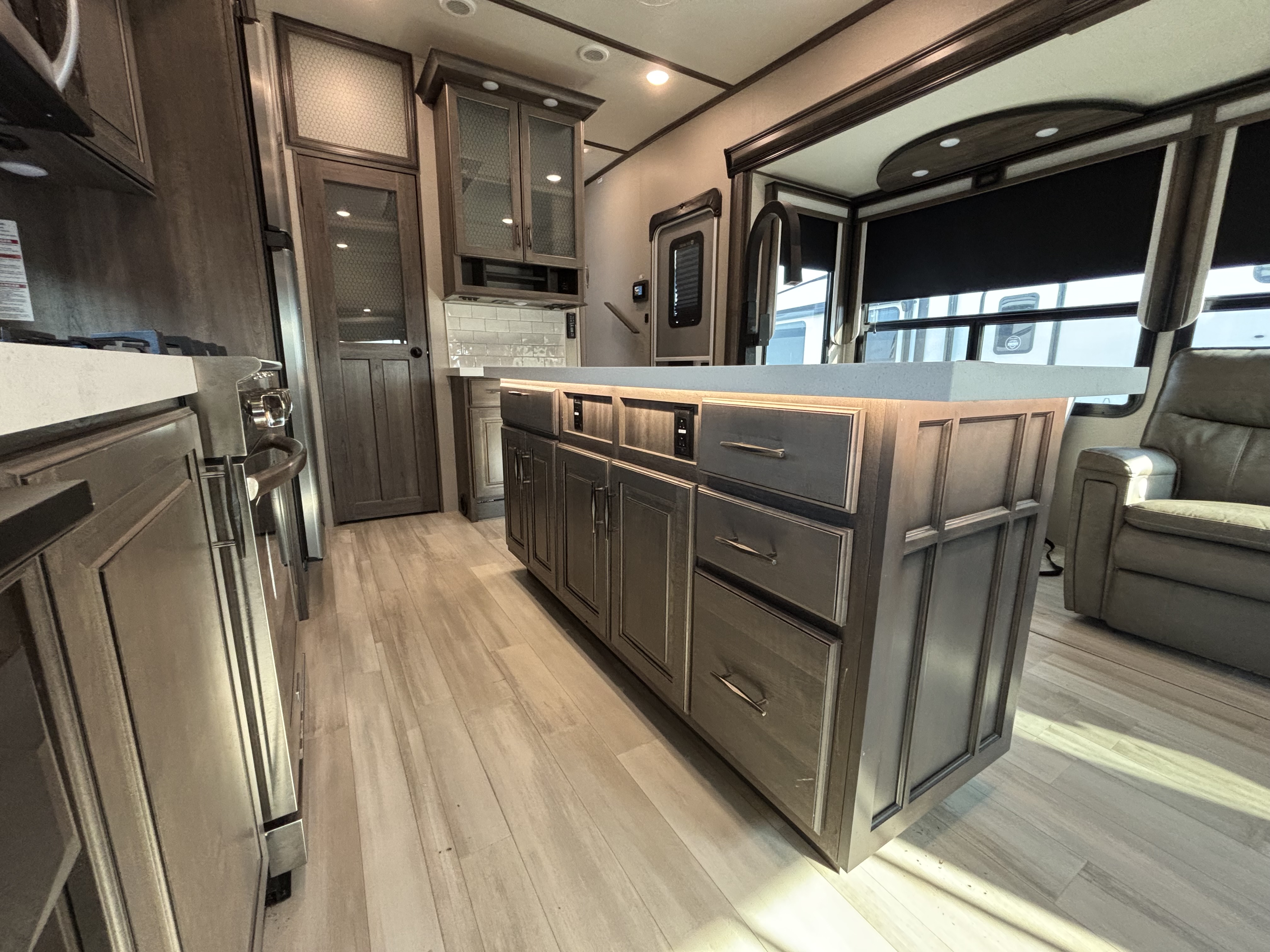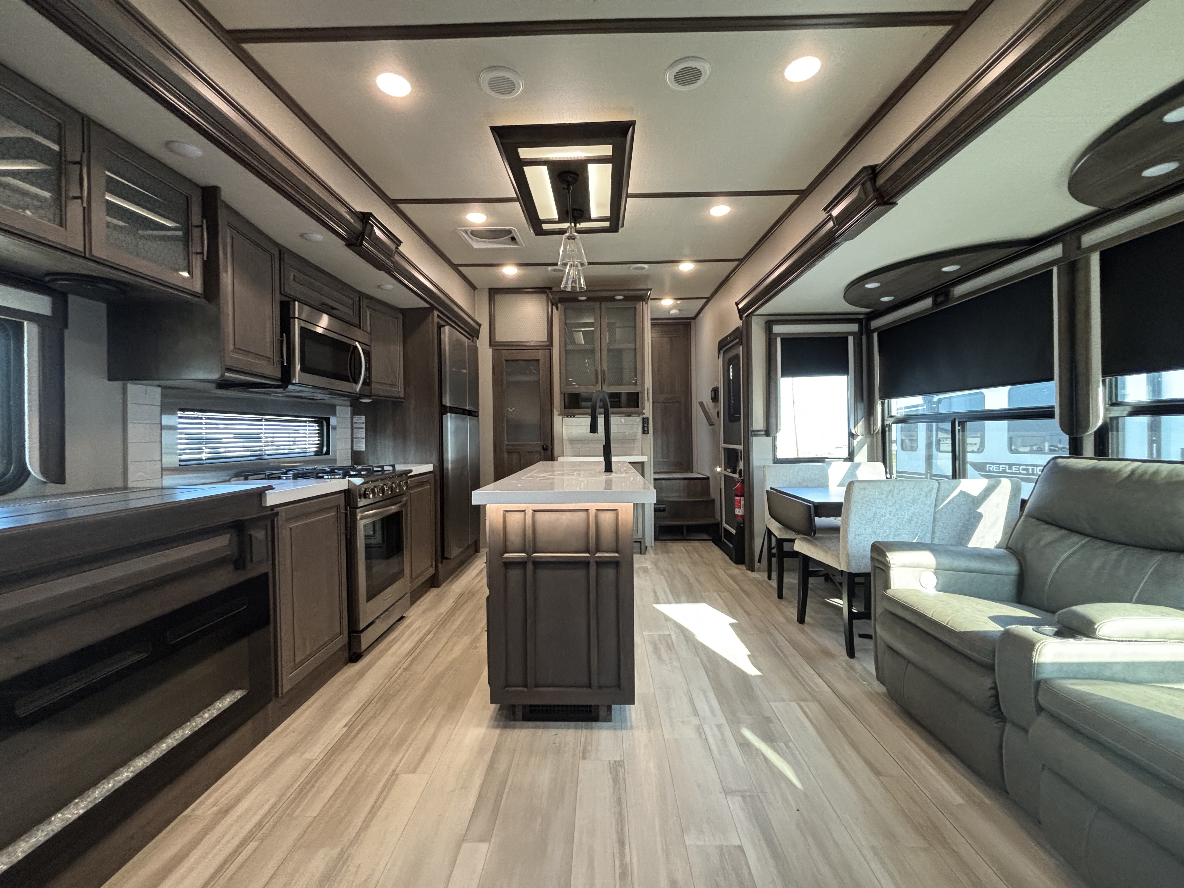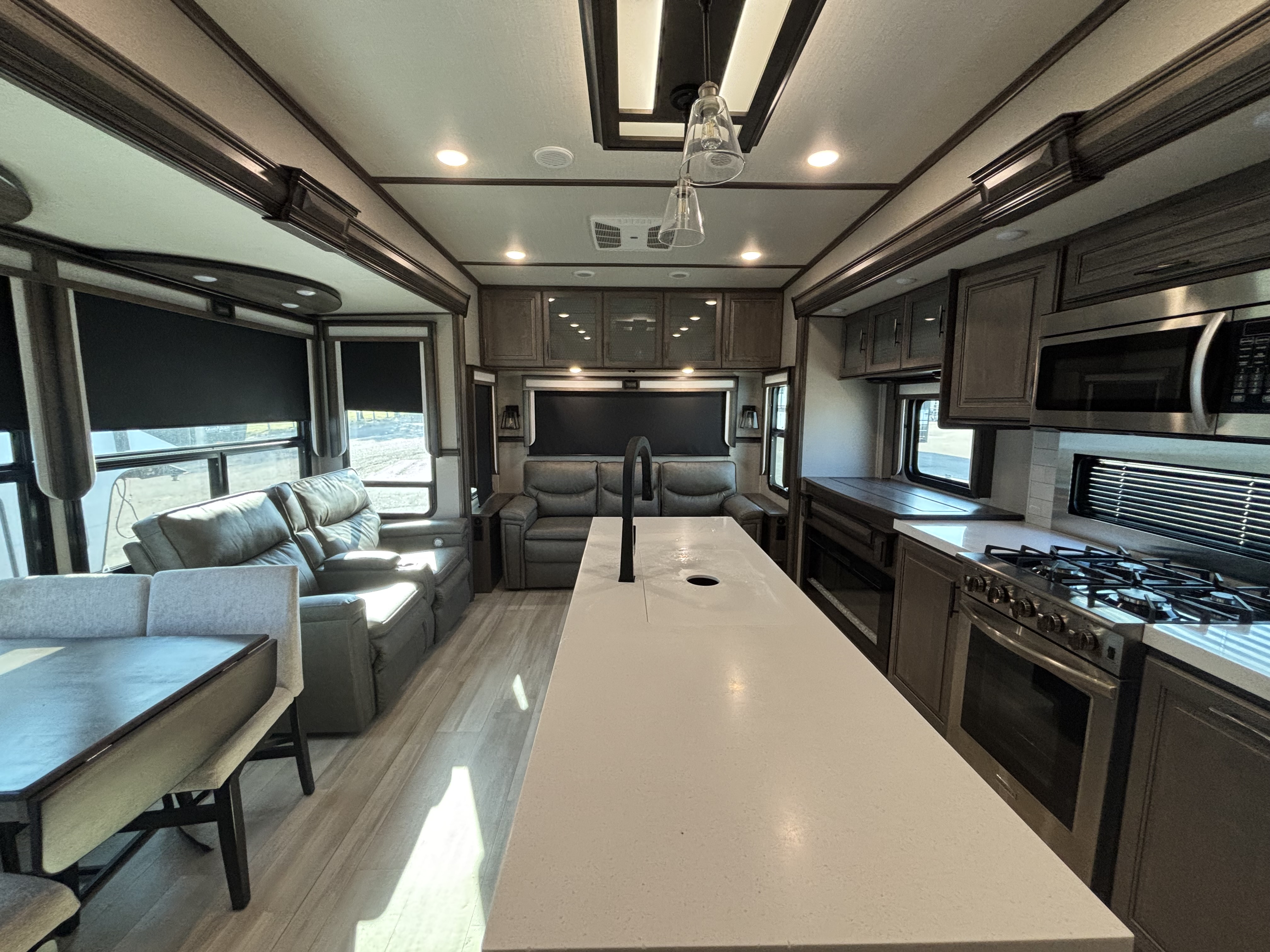 If more room is what you desire, Solitude is the most spacious Extended Stay Fifth Wheel ever built! The Solitude RV delivers taller ceilings, taller, deeper cabinets, larger scenic window areas, a full 6' 8" tall slideout, and a body width that measures a full 101 inches!