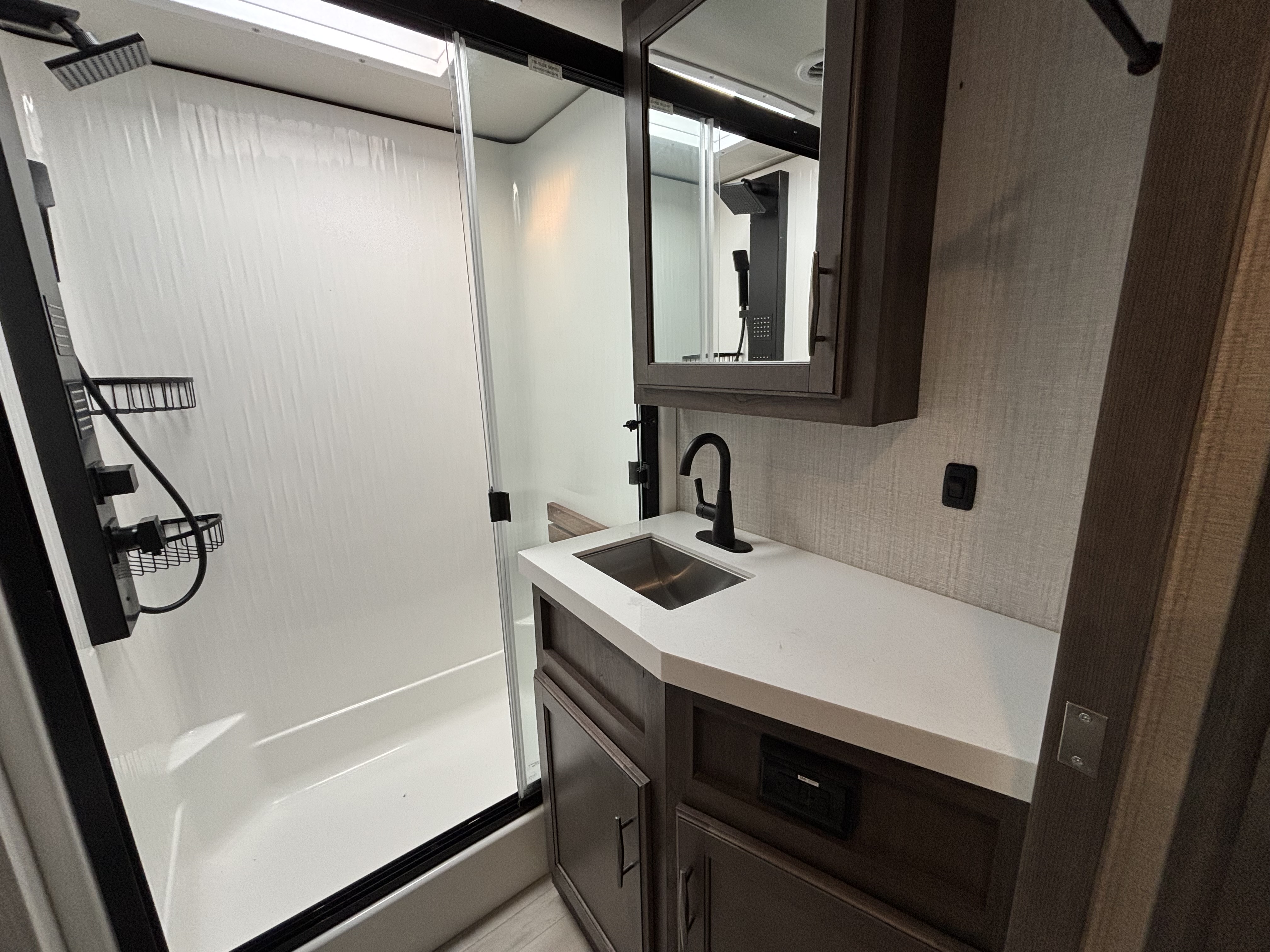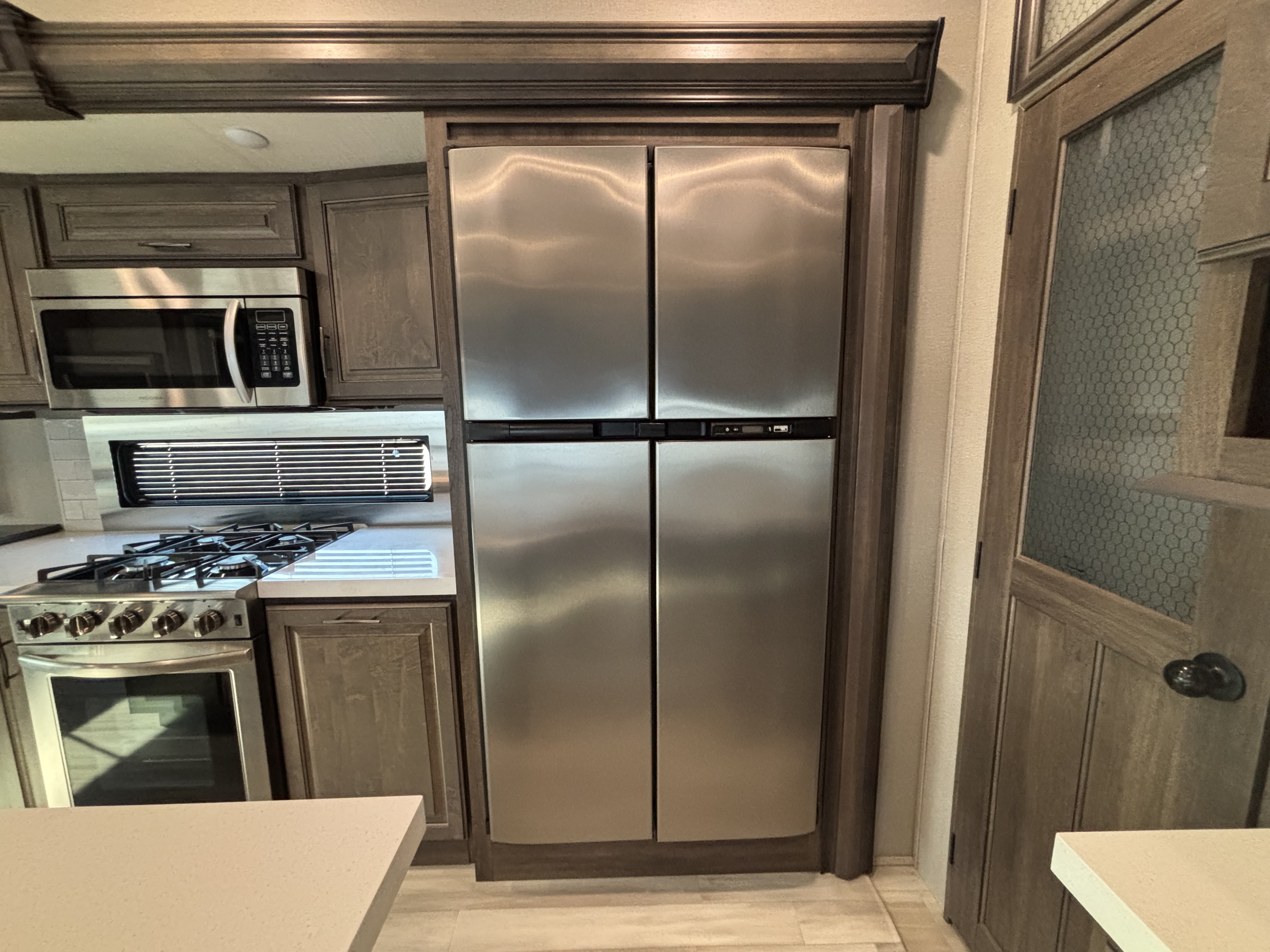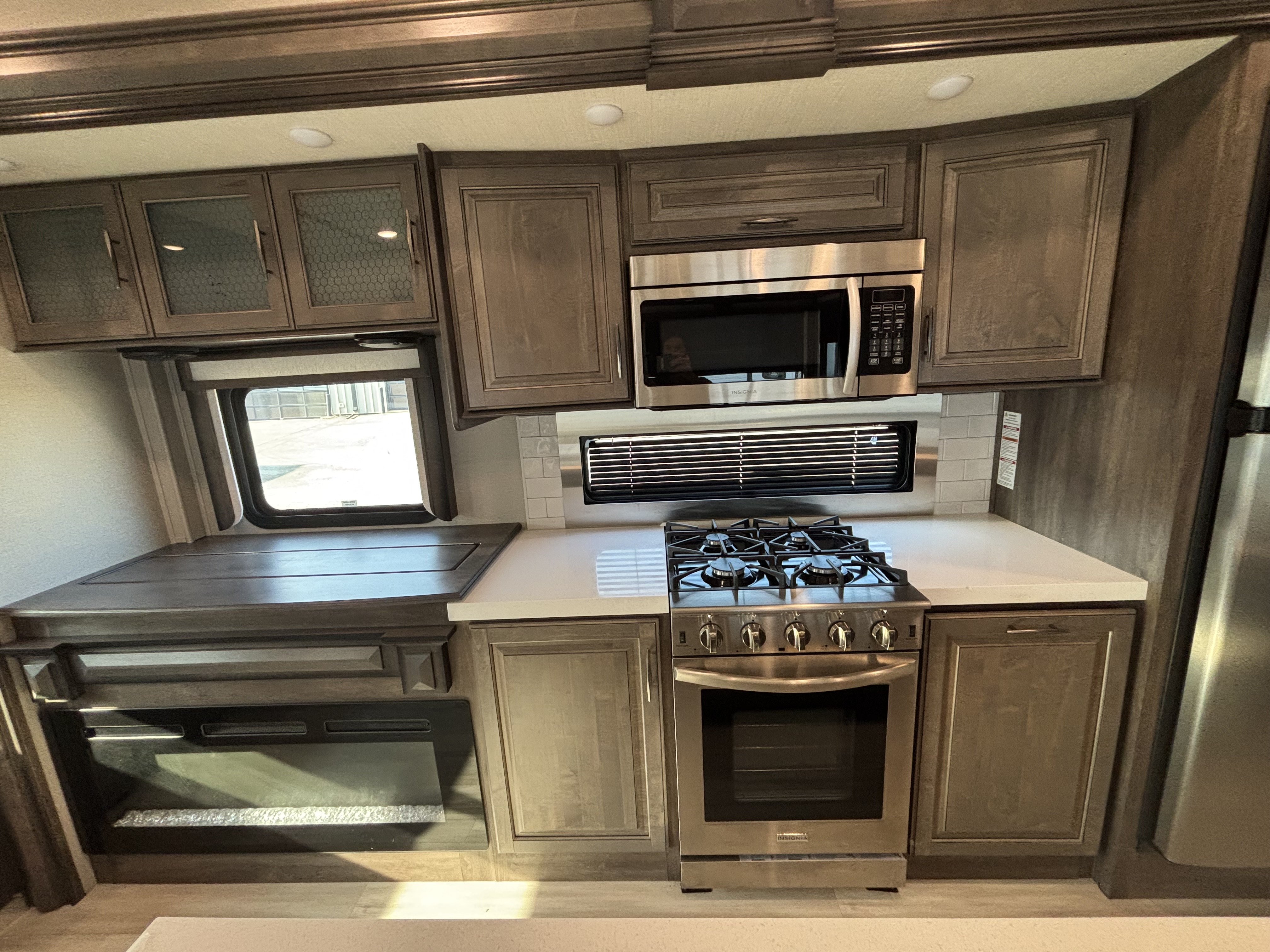 If more room is what you desire, Solitude is the most spacious Extended Stay Fifth Wheel ever built! The Solitude RV delivers taller ceilings, taller, deeper cabinets, larger scenic window areas, a full 6' 8" tall slideout, and a body width that measures a full 101 inches!