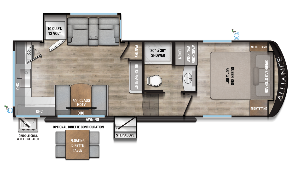 The Avenue All-Access 23ML fifth wheel by Alliance RV is thoughtfully designed to provide comfort, functionality, and an elevated travel experience.