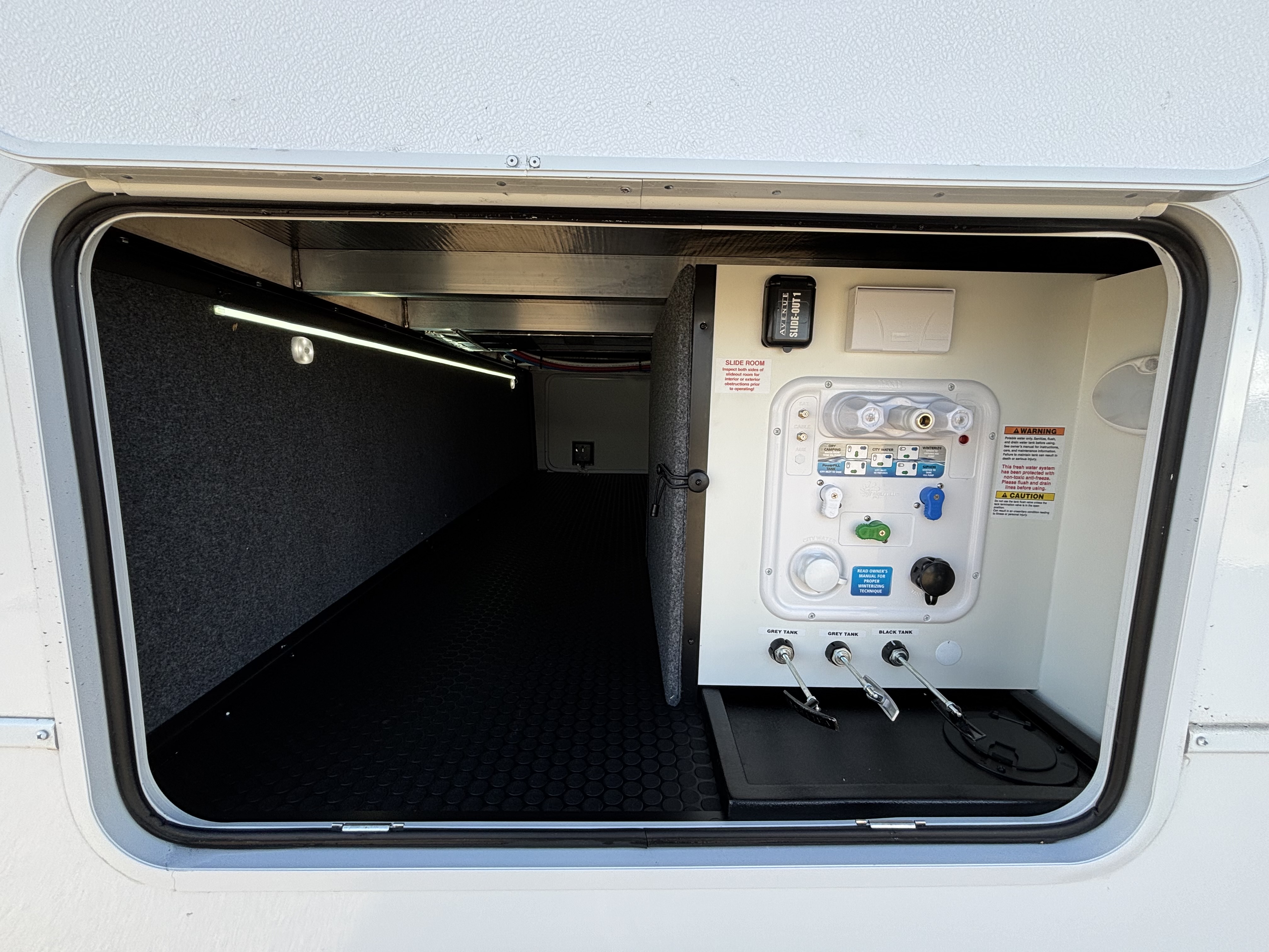 The Avenue 29RL is built for durability & convenience with a benchmark chassis, 101" wide-body construction, and flush slide-out floors to maximize space and safety. The Azdel composite sidewalls and seamless PVC roof ensure durability, while the vinyl flooring throughout makes cleaning easy and allergen-free. With hidden storage in clever spots, including behind the TV and inside the end tables and ottoman, this RV maximizes space for your belongings.