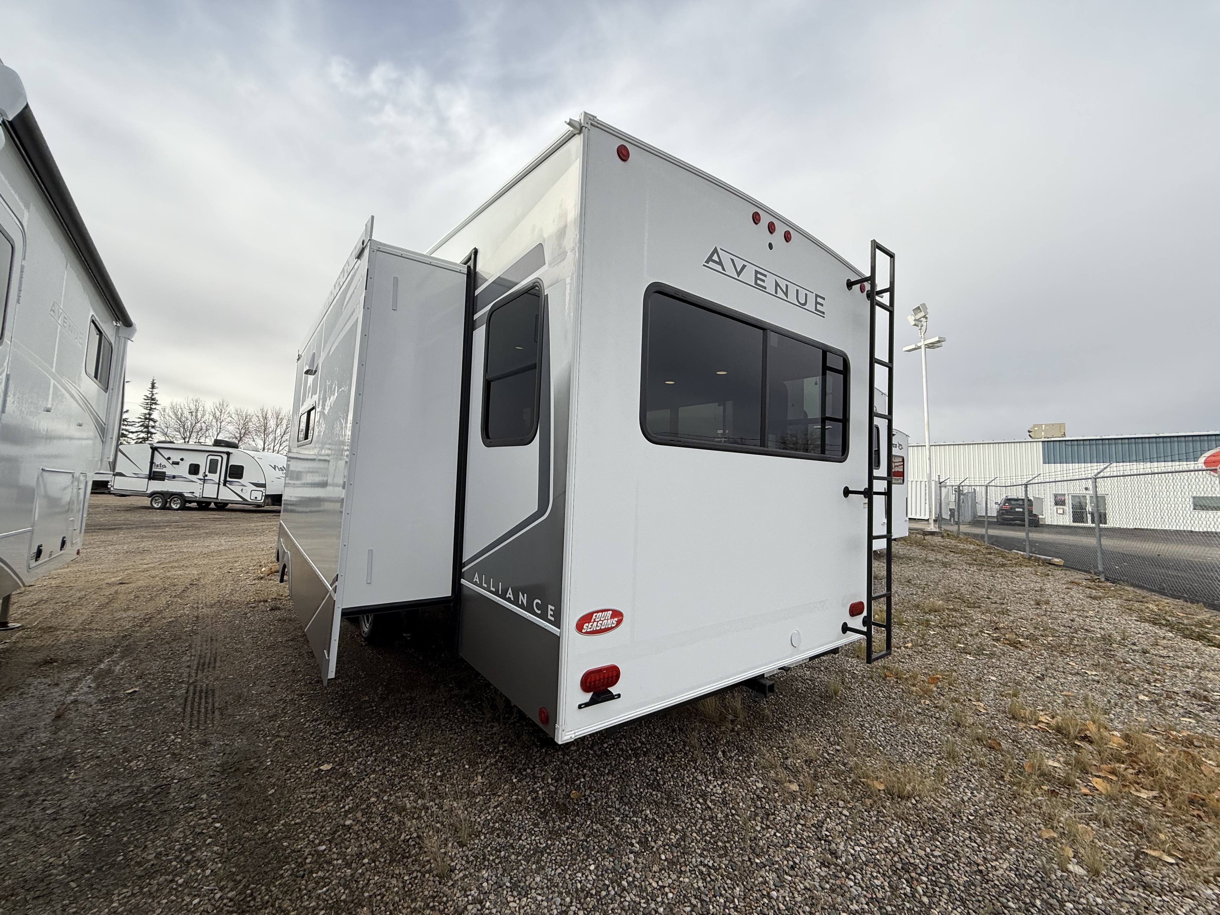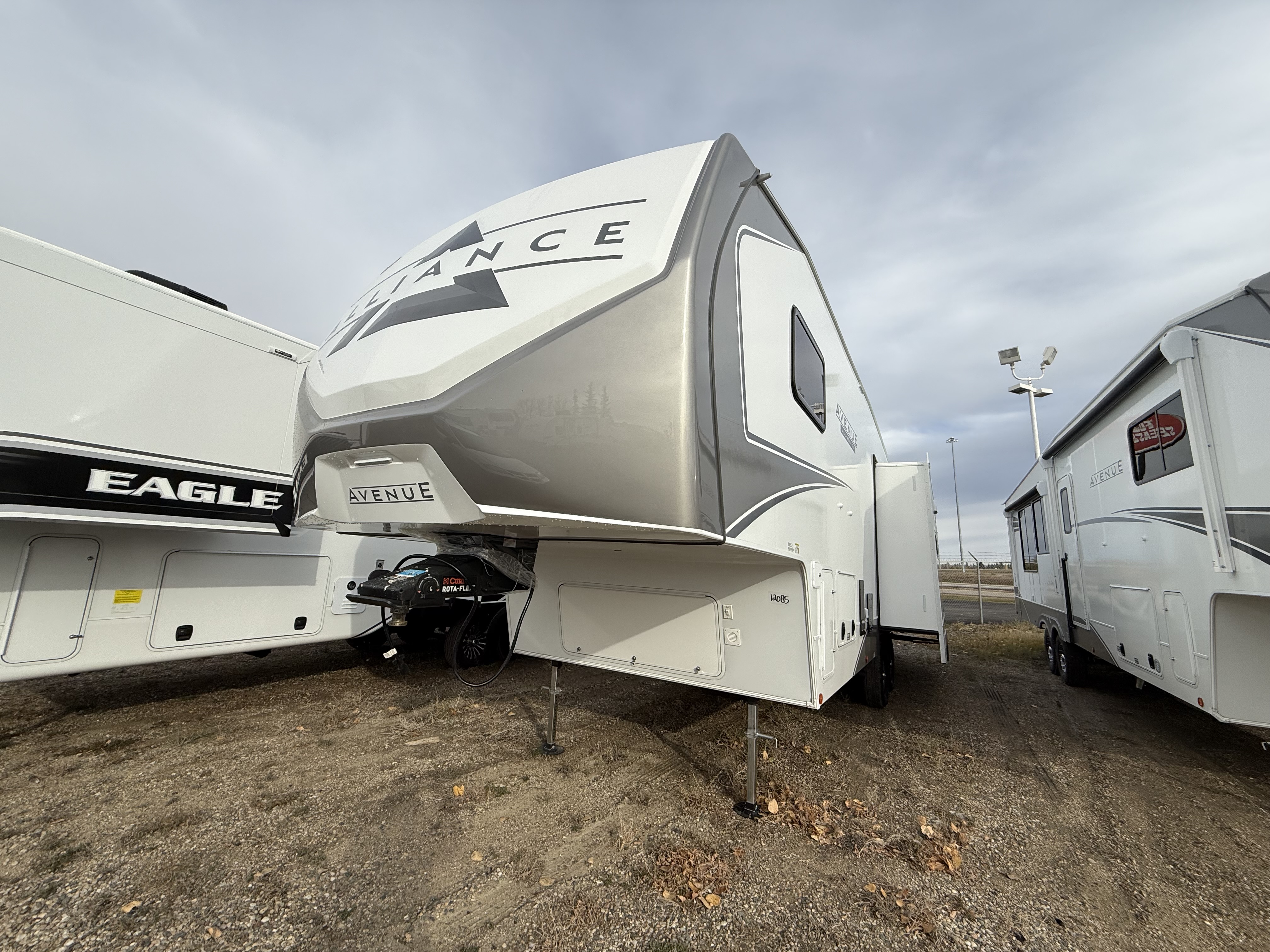 The Avenue 29RL is the perfect fifth wheel for couples who love to travel and entertain. The private front bedroom features a queen bed, nightstands, and a wardrobe for added storage. The full bathroom includes a 30" x 36" shower, vanity, and linen closet for added convenience.