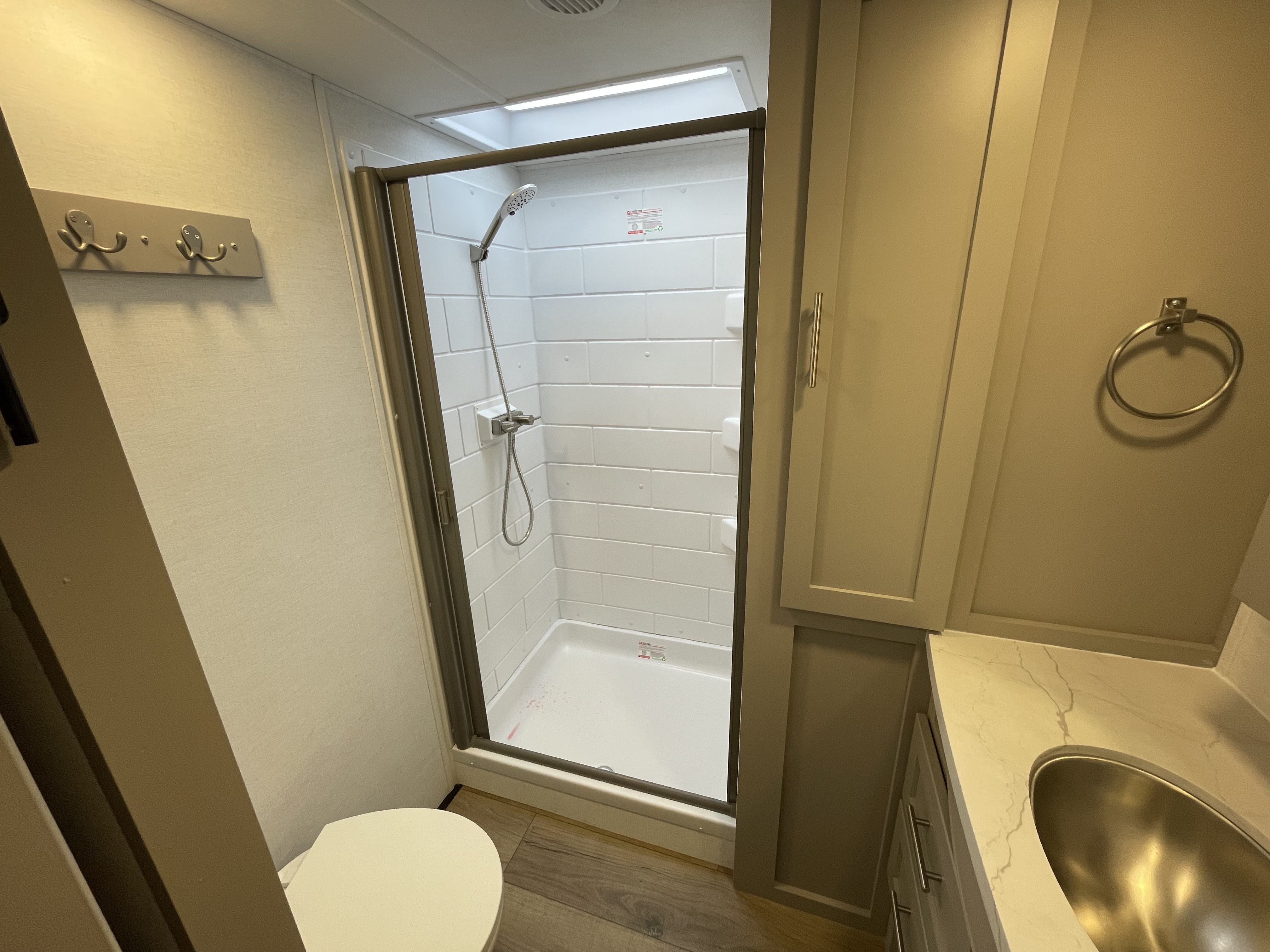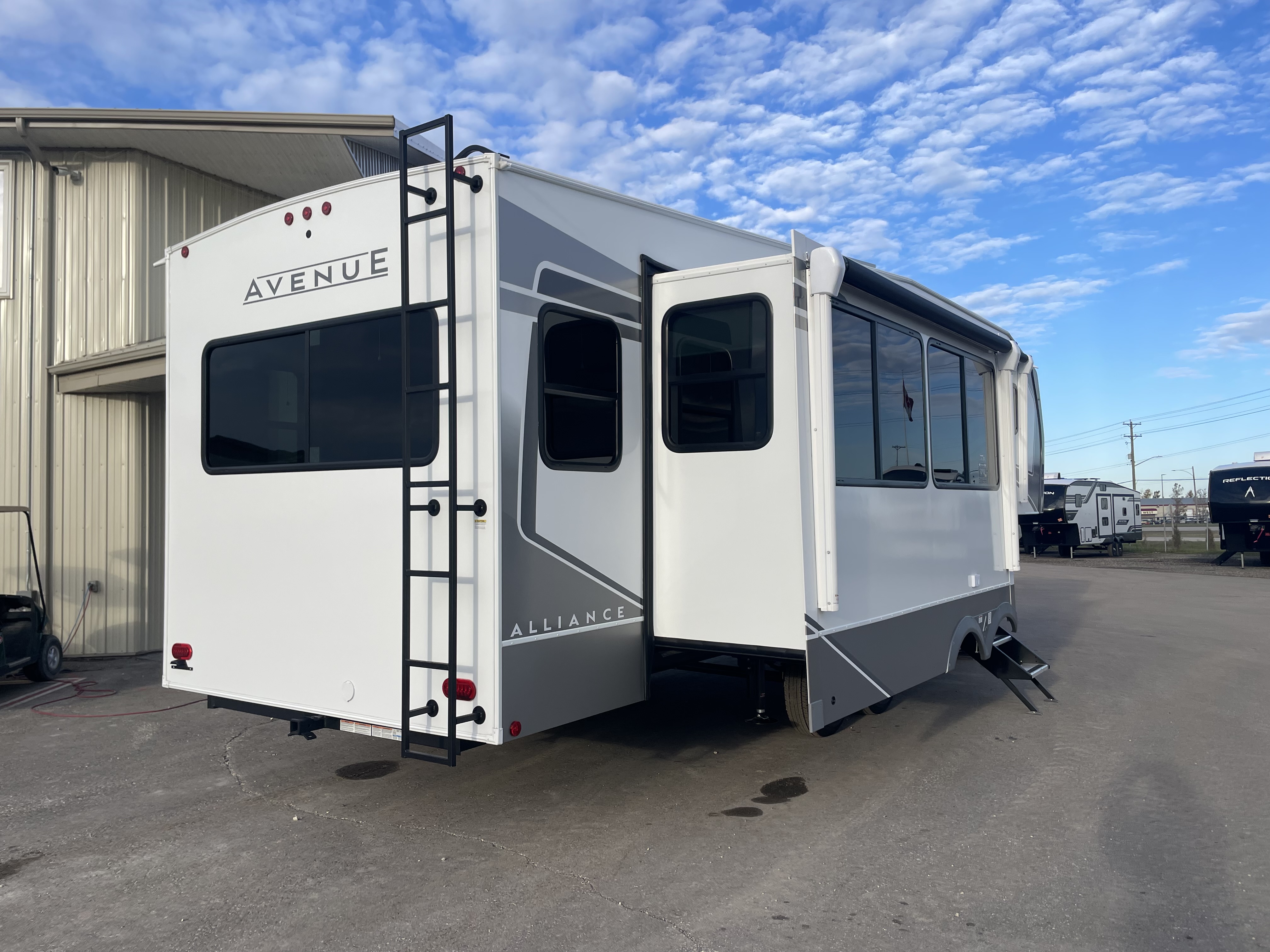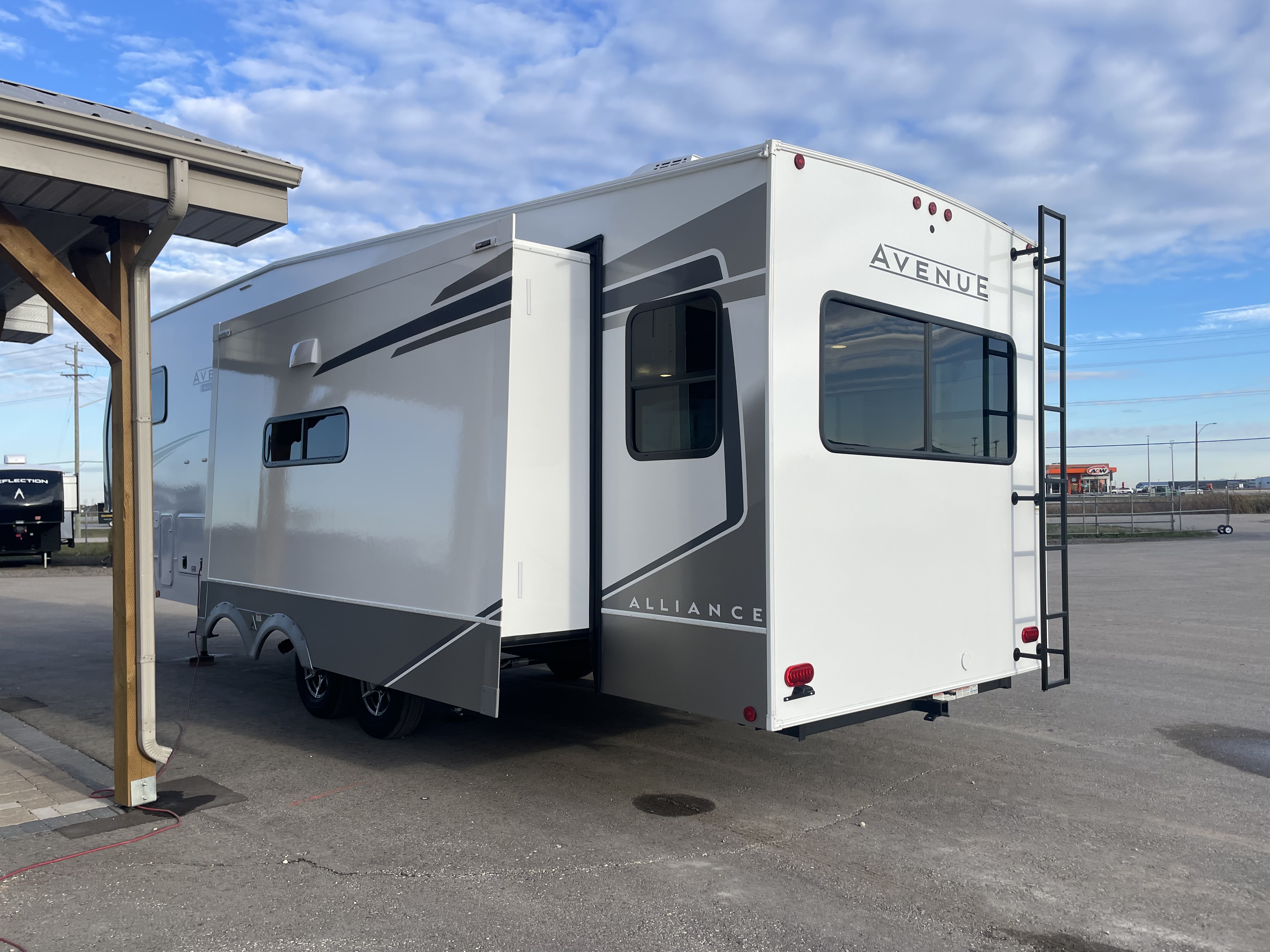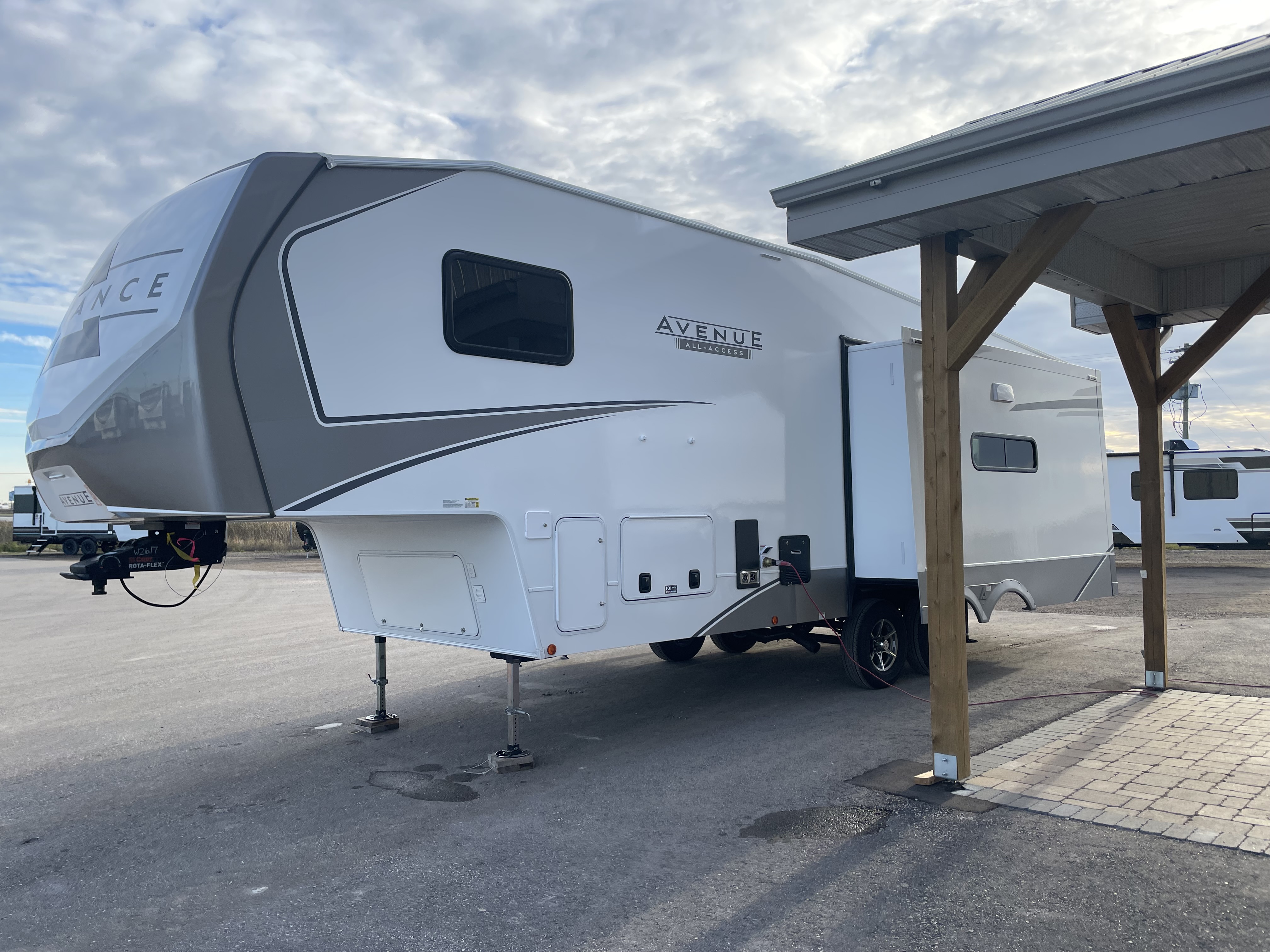 The Avenue 29RL is the perfect fifth wheel for couples who love to travel and entertain. The private front bedroom features a queen bed, nightstands, and a wardrobe for added storage. The full bathroom includes a 30" x 36" shower, vanity, and linen closet for added convenience.