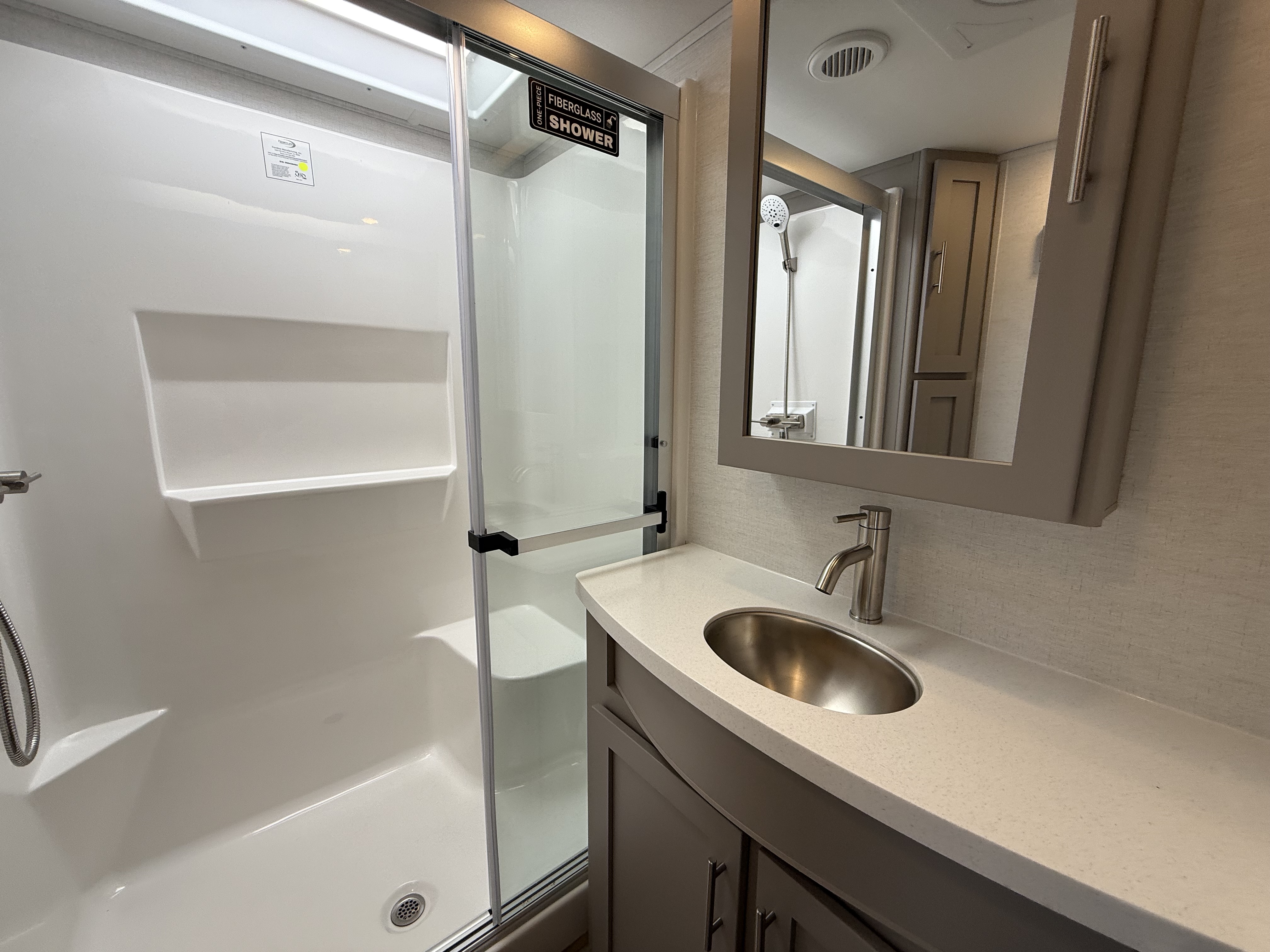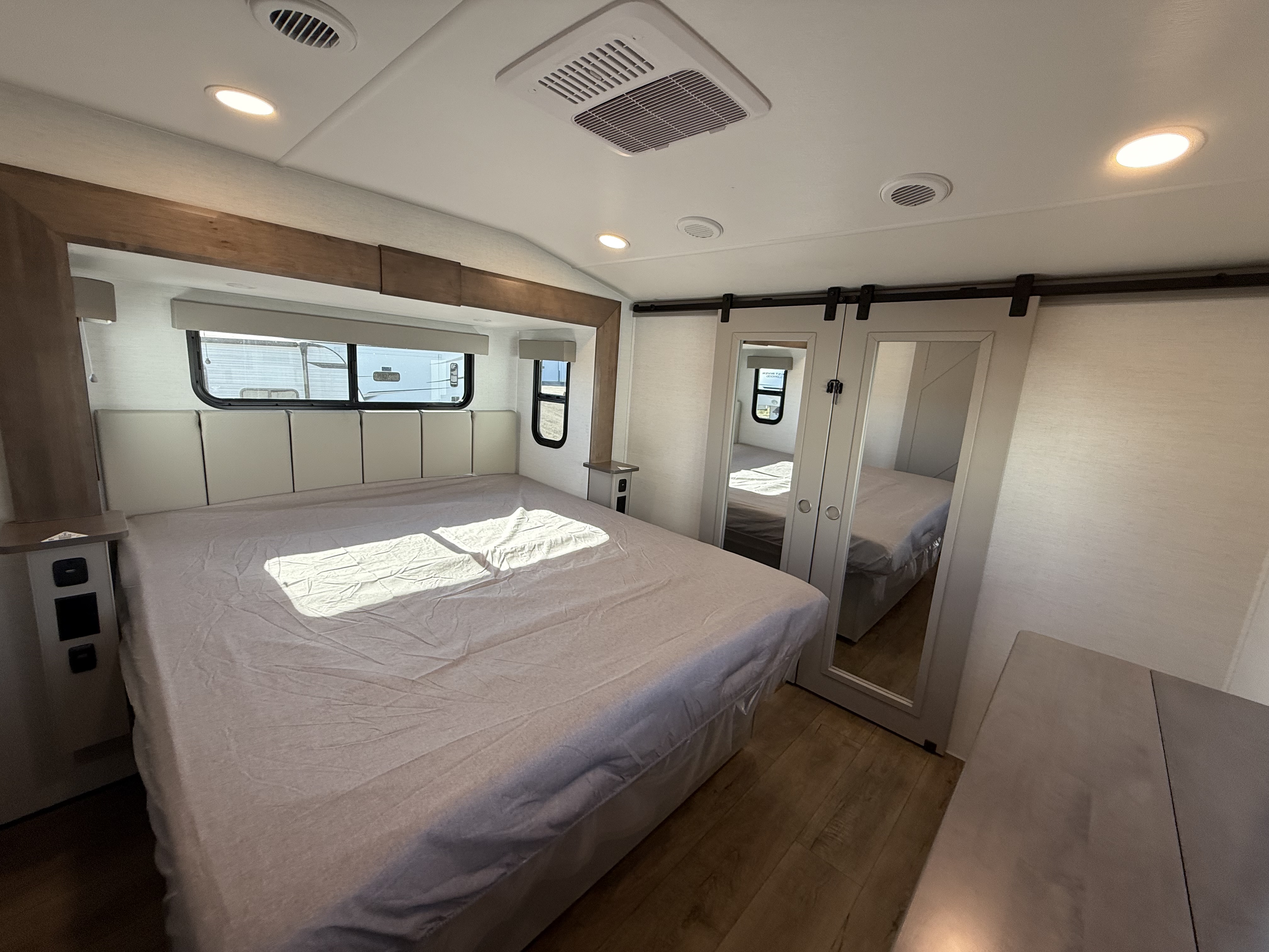 - Queen bed slide in the private front bedroom, with an option to upgrade to a king bed.