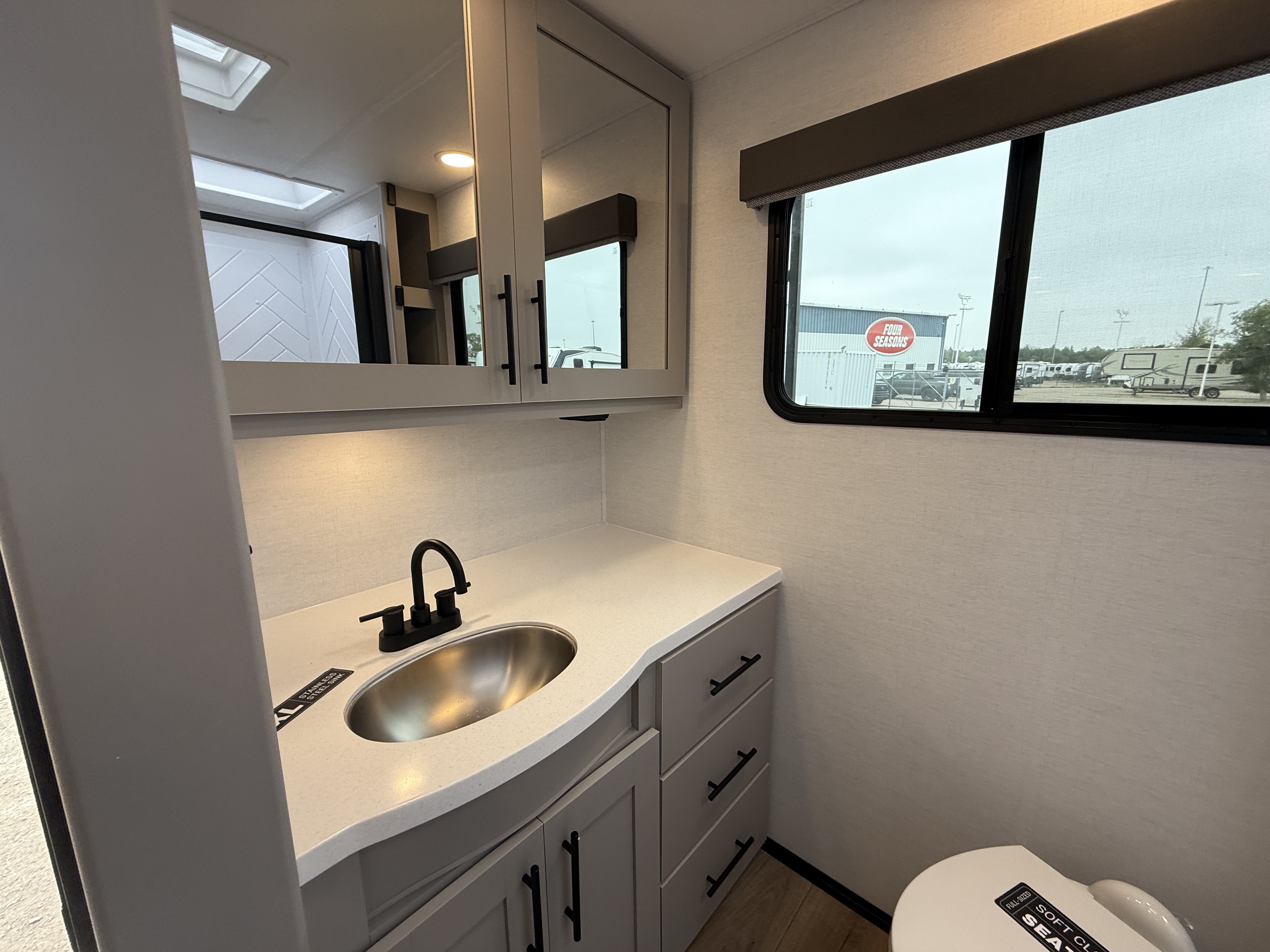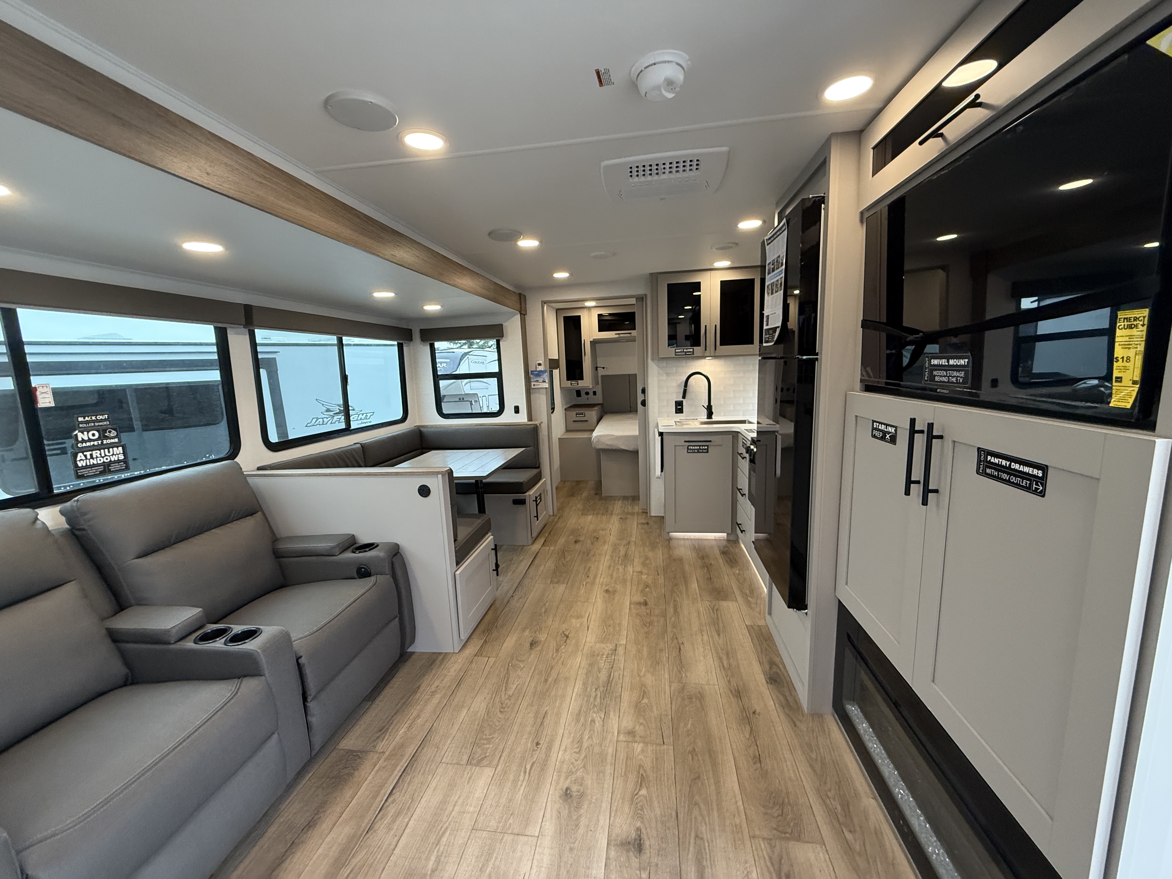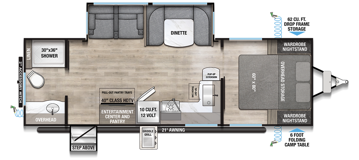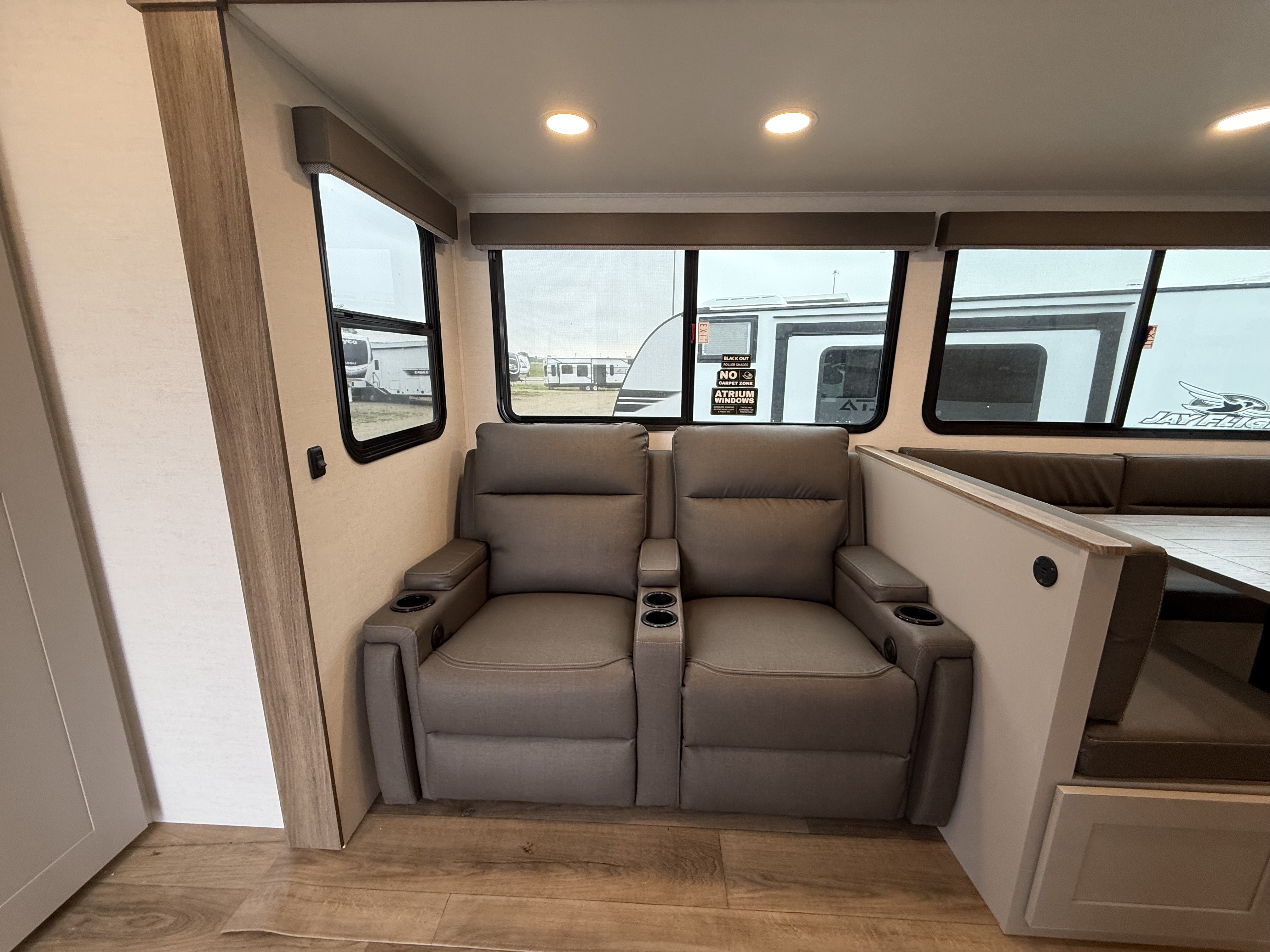 The Alliance RV Delta 262RB is a travel trailer perfect for couples or small families looking for comfort on camping trips. It features a full rear bath, U-shaped dinette, queen bed, outdoor griddle, 40" HDTV, 10 cu. ft. refrigerator, pull-out trash can, and flip-up counter extension. The U-shaped dinette is great for meals, games, or extra sleeping space. The kitchen has a three-burner range, large sink, and outdoor griddle for cooking. The full rear bath includes a shower, toilet, vanity with sink, and linen cabinet for storage. The trailer is ideal for couples or families with a queen bed, sofa, and U-shaped dinette that can be converted into sleeping spaces. The kitchen amenities include a three-burner range, outdoor griddle, 10 cu. ft. refrigerator, large sink, pull-out trash can, and flip-up counter extension. The full rear bath features a shower, toilet, vanity, and linen cabinet for added convenience.
