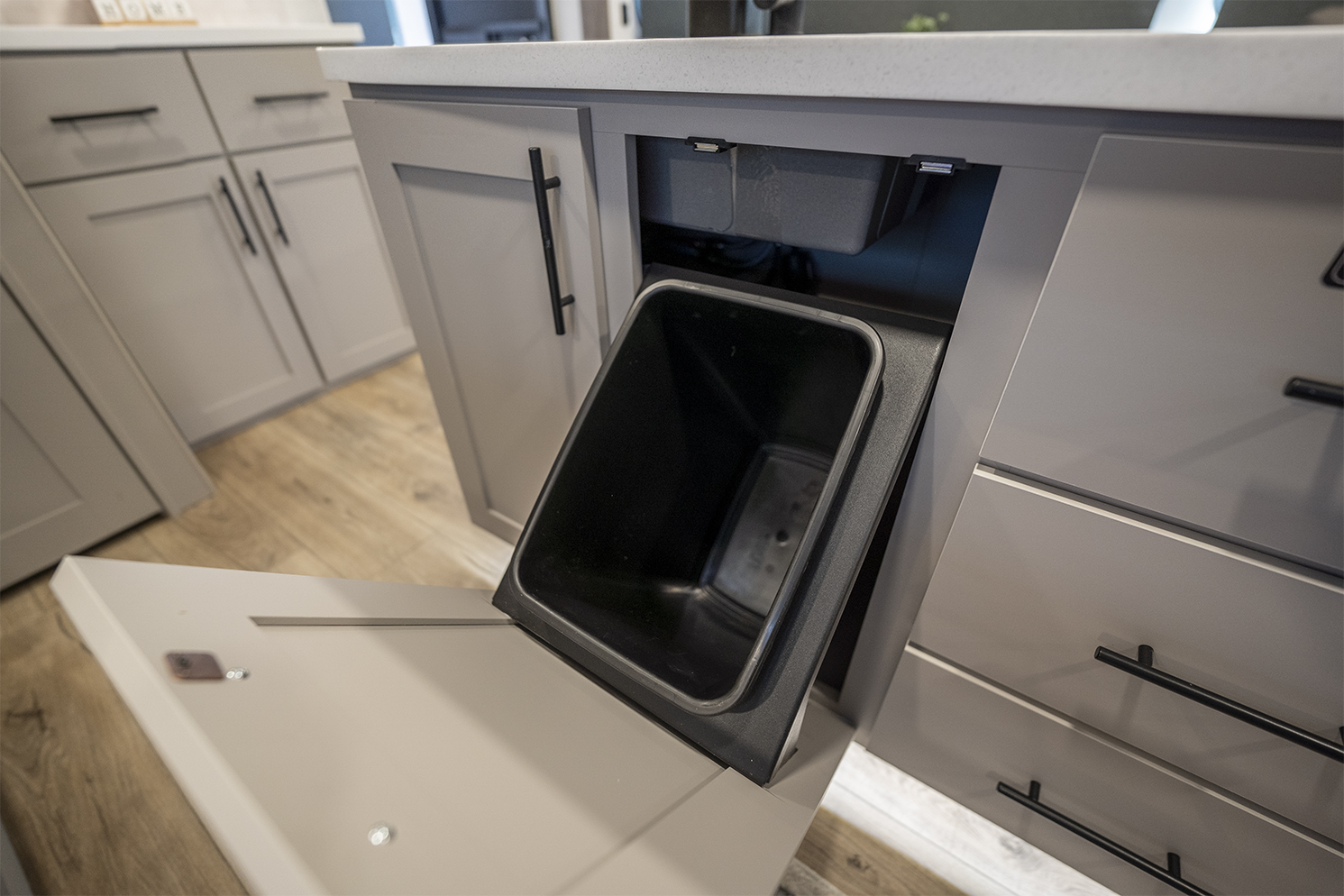 - Pull-out kitchen trash can