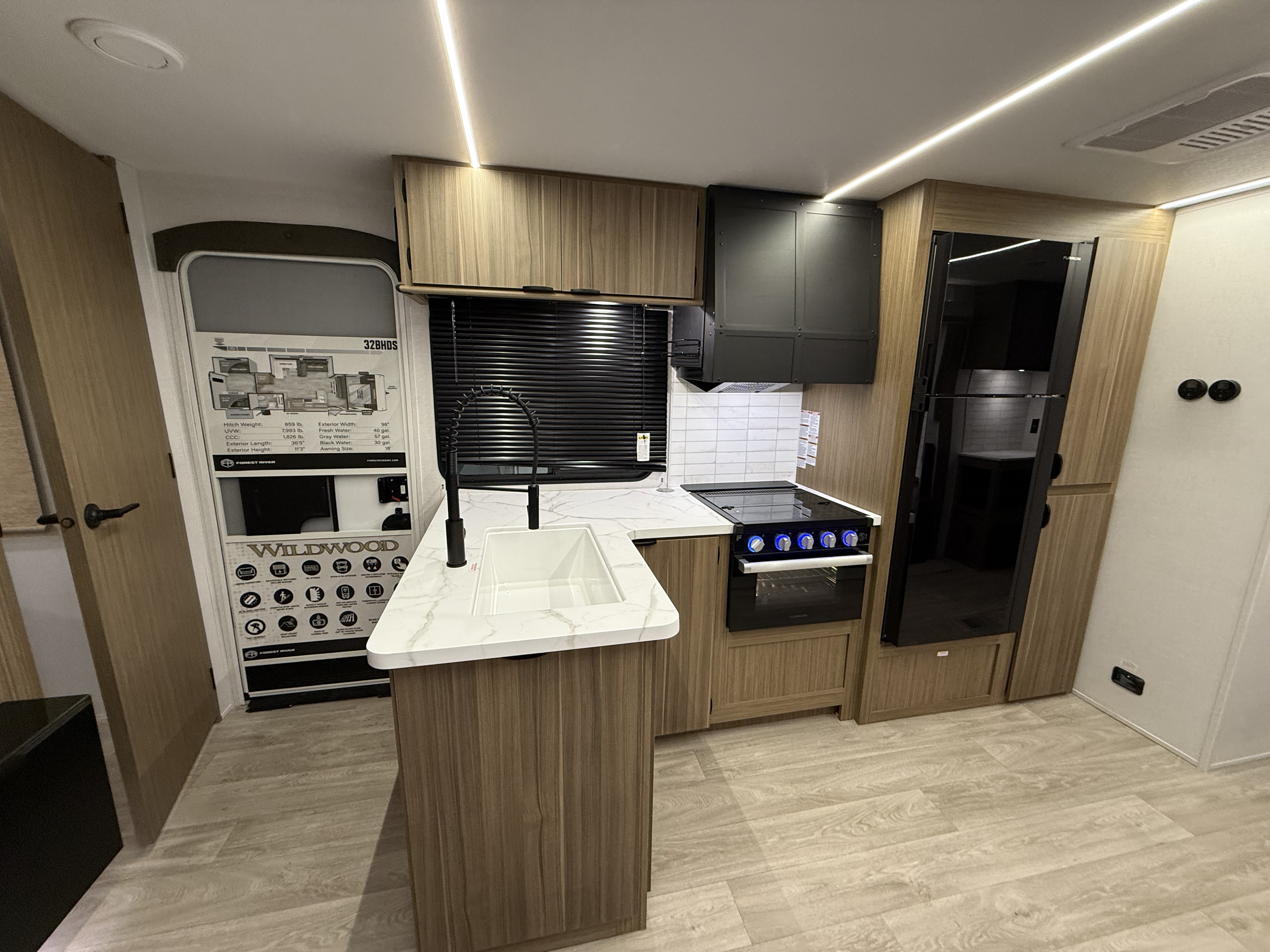 - Dimmable Interior LED “Blade Lighting” (Living Area)