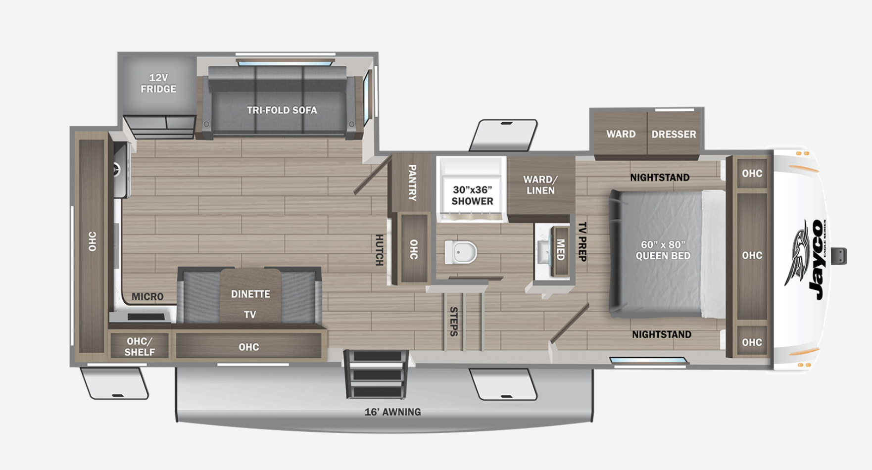 Whether you’re boondocking in the wilderness or camping lakeside with friends, this Jayco Fifth Wheel is designed to take you there in style, comfort, and confidence. The road is calling, and the Eagle SLE is ready to take you there.
